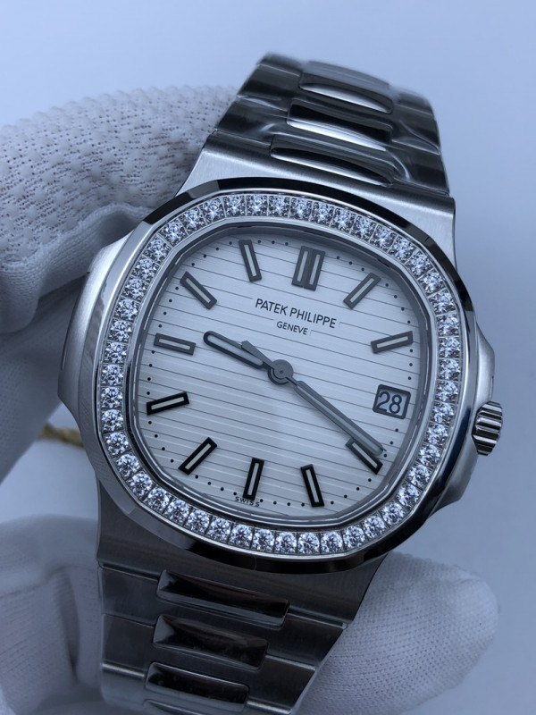(준비완료/특급배송/예상수령7일)NO.356/ PP공장 V3 파텍필립 노틸러스 화이트다이얼 다이아베젤 브슬